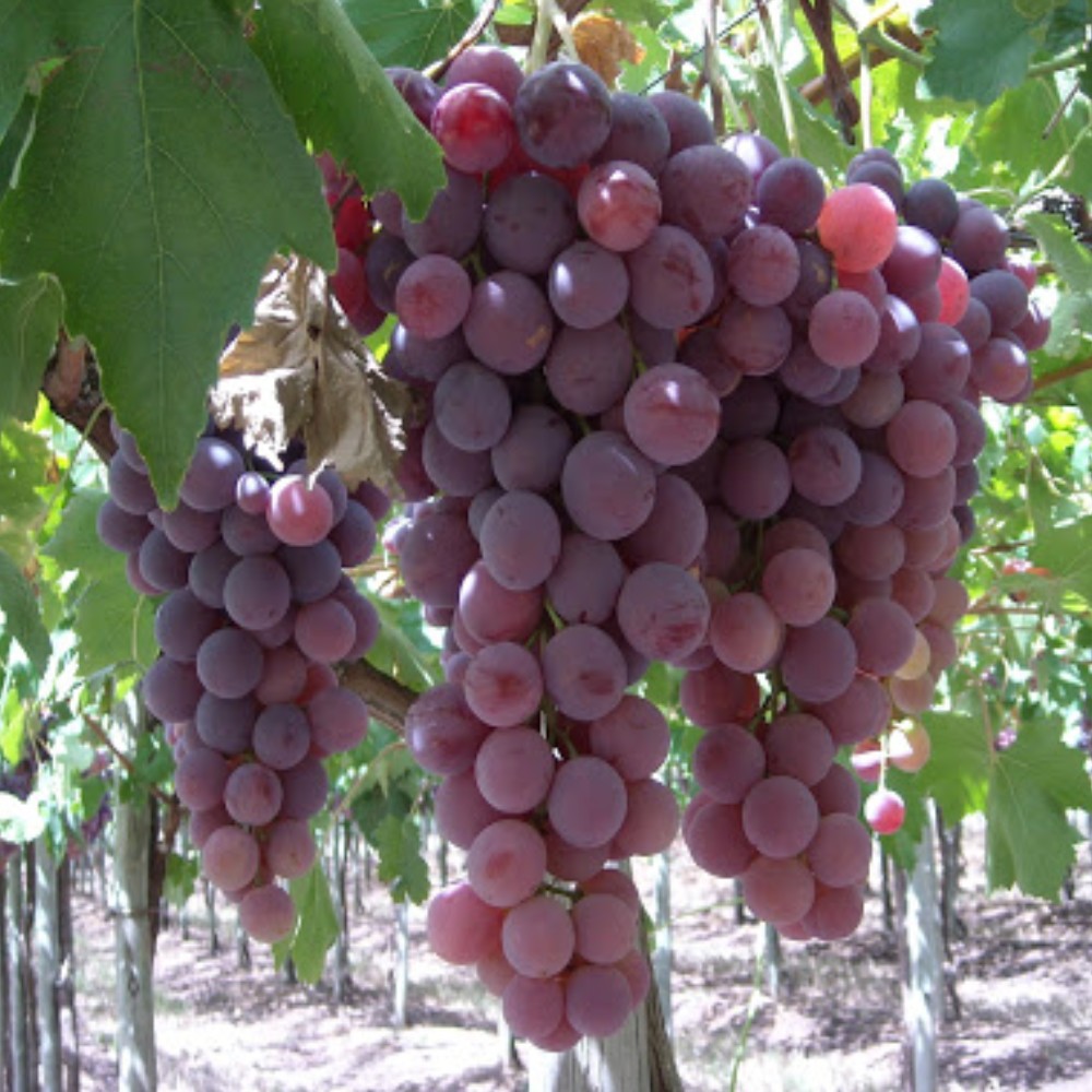 La uva Red Globe es destacada por sus racimos de gran tamaño y bayas de alto calibre. Ésta variedad posee semillas y tiene un sabor dulce y apetecible, una vez madura presenta una coloración rojo oscuro y ligeramente brillante. La piel de la uva es firme y su textura es consistente. La Red Globe es una uva muy popular para comer y adornar las fuentes en las mesas, por su hermoso aspecto.